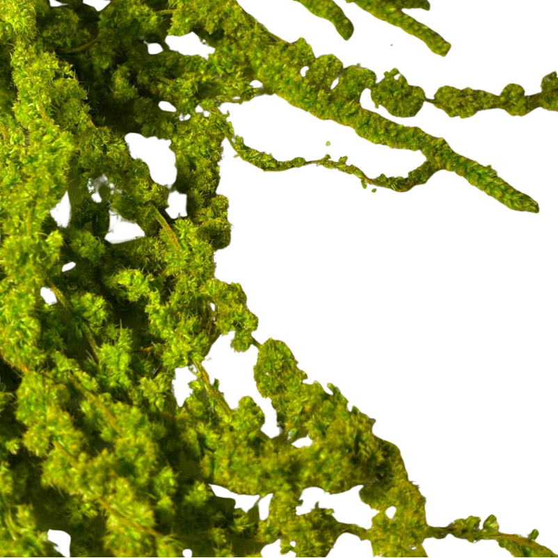 Véritable signature décorative, l’Amarante stabilisée incarne l’élégance du végétal en mouvement. Ses longues inflorescences tombantes offrent un rendu à la fois fluide et majestueux, tandis que ses nuances profondes créent un contraste subtil et sophistiqué. Idéale pour les aménagements intérieurs haut de gamme, elle sublime les espaces en y apportant relief, texture et raffinement naturel. Symbole de design organique, elle allie poésie, volume et durabilité.