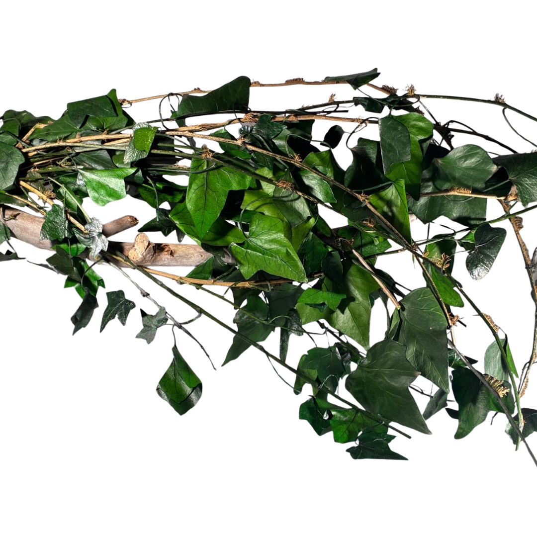 Le Lierre Liane stabilisé se distingue par ses tiges souples et gracieuses, ornées de feuilles finement découpées qui évoquent la nature dans toute sa vitalité. Son feuillage dense et rythmé, d’un vert profond et lumineux, apporte un mouvement naturel et une présence vivante à toutes les compositions végétales.