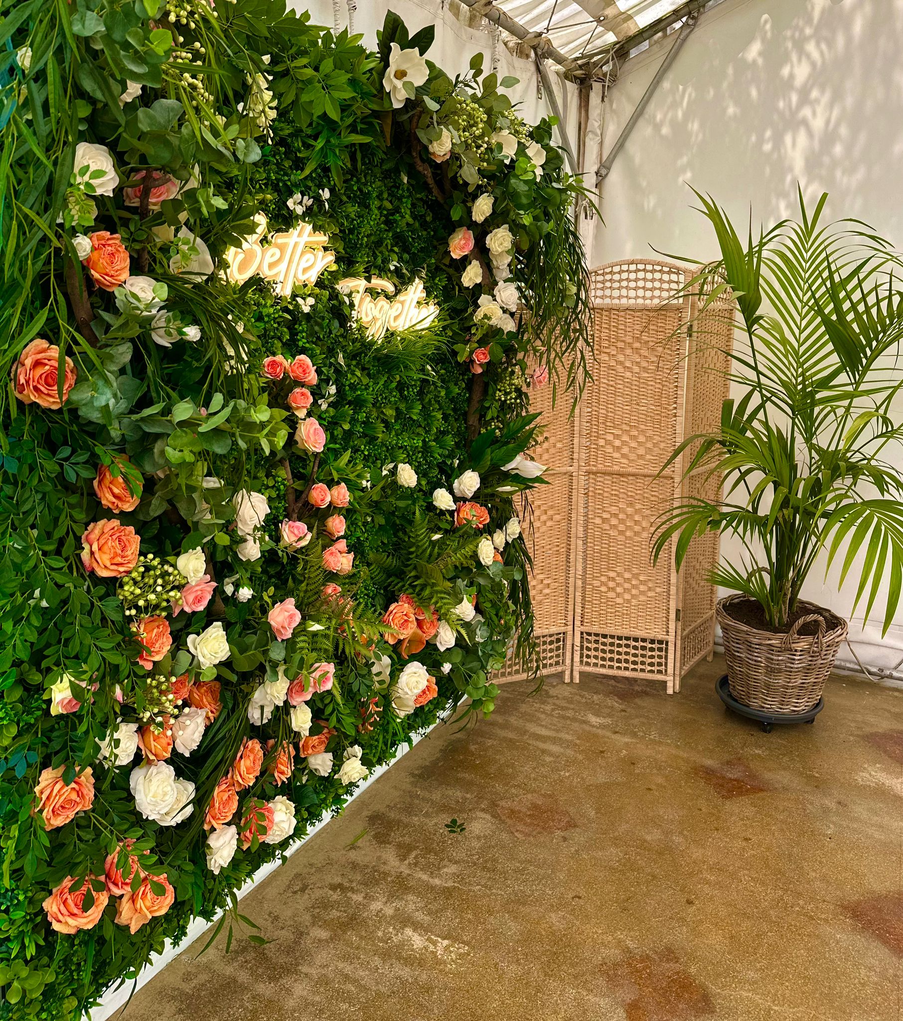 Notre équipe vous livre et installe un mur tout prêt pour vos événements, mariages, réceptions etc...
