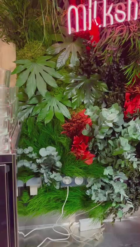 En mixant les types, les couleurs et le volume des végétaux les créations sont uniques et personnalisables à l'infini. Des textures telles que du bois ou du minéral peuvent également être intégrées aux murs.