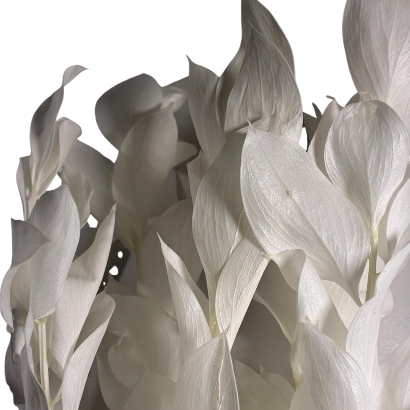 Le Ruscus stabilisé séduit par son feuillage graphique et élégant, composé de feuilles ovales légèrement rigides, disposées avec une symétrie naturelle sur des tiges fines et souples. Disponible en vert profond ou en blanc immaculé, il s’adapte à tous les styles décoratifs du naturel au plus contemporain.